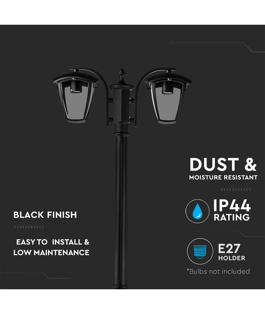 VT-739 paaltoplamp E27 - zwart, 2 koppen