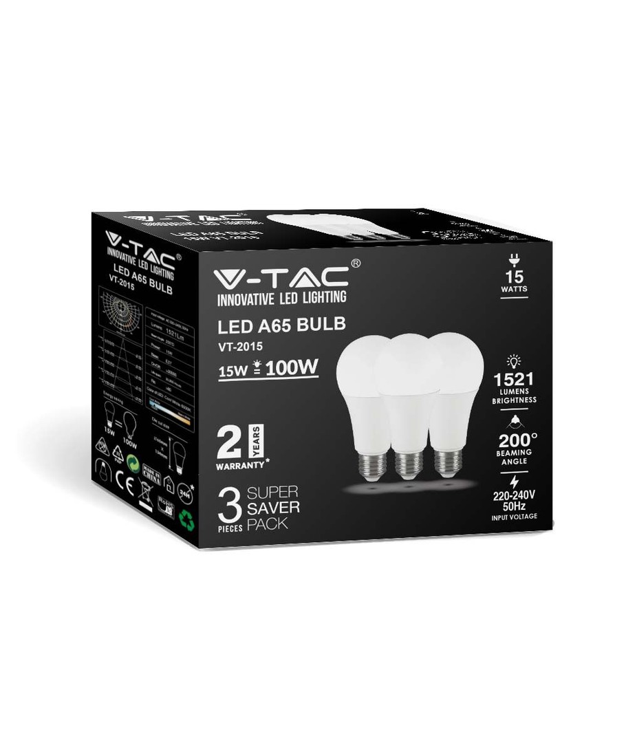 A65 VT-2015 LED 15W E27 - plastic lamp, 6500K, 200°, 3 stuks per verpakking V-TAC Uitklappen