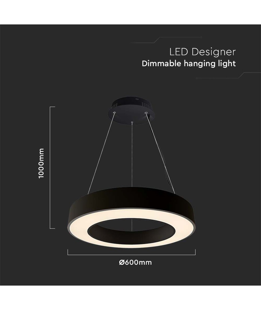60cm 50W dimbare LED hanglamp - 122lm/W, 6100lm, zwarte ring, 4000K, TRIAC dimbaar V-TAC Uitklappen