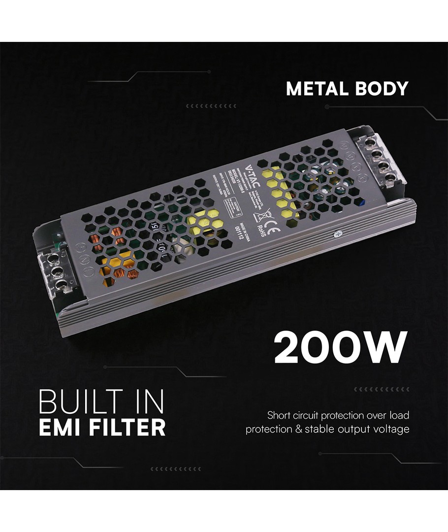 Nieuw 200W / 12V DC voeding voor LED strips - 16.5A, IP20, Slim design V-TAC Uitklappen
