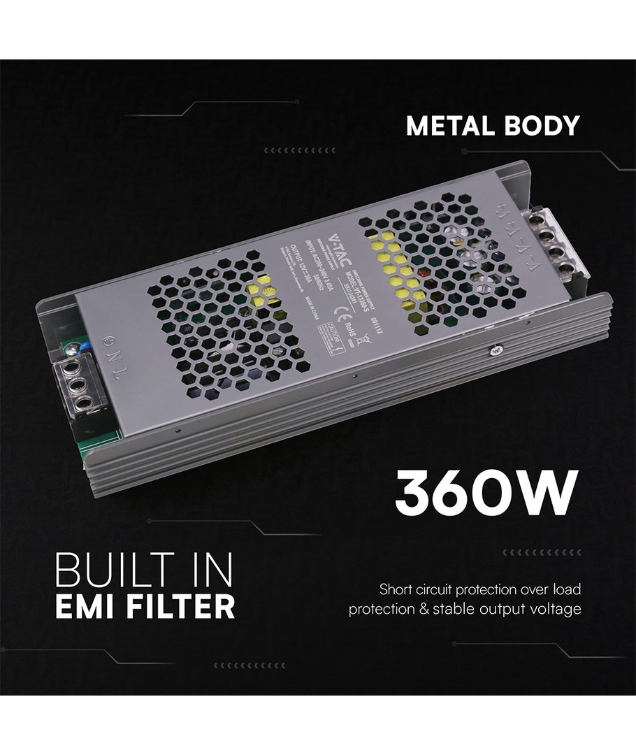 Nieuw 360W / 12V DC Slim voeding - 30A, IP20, voor LED-strips V-TAC Uitklappen