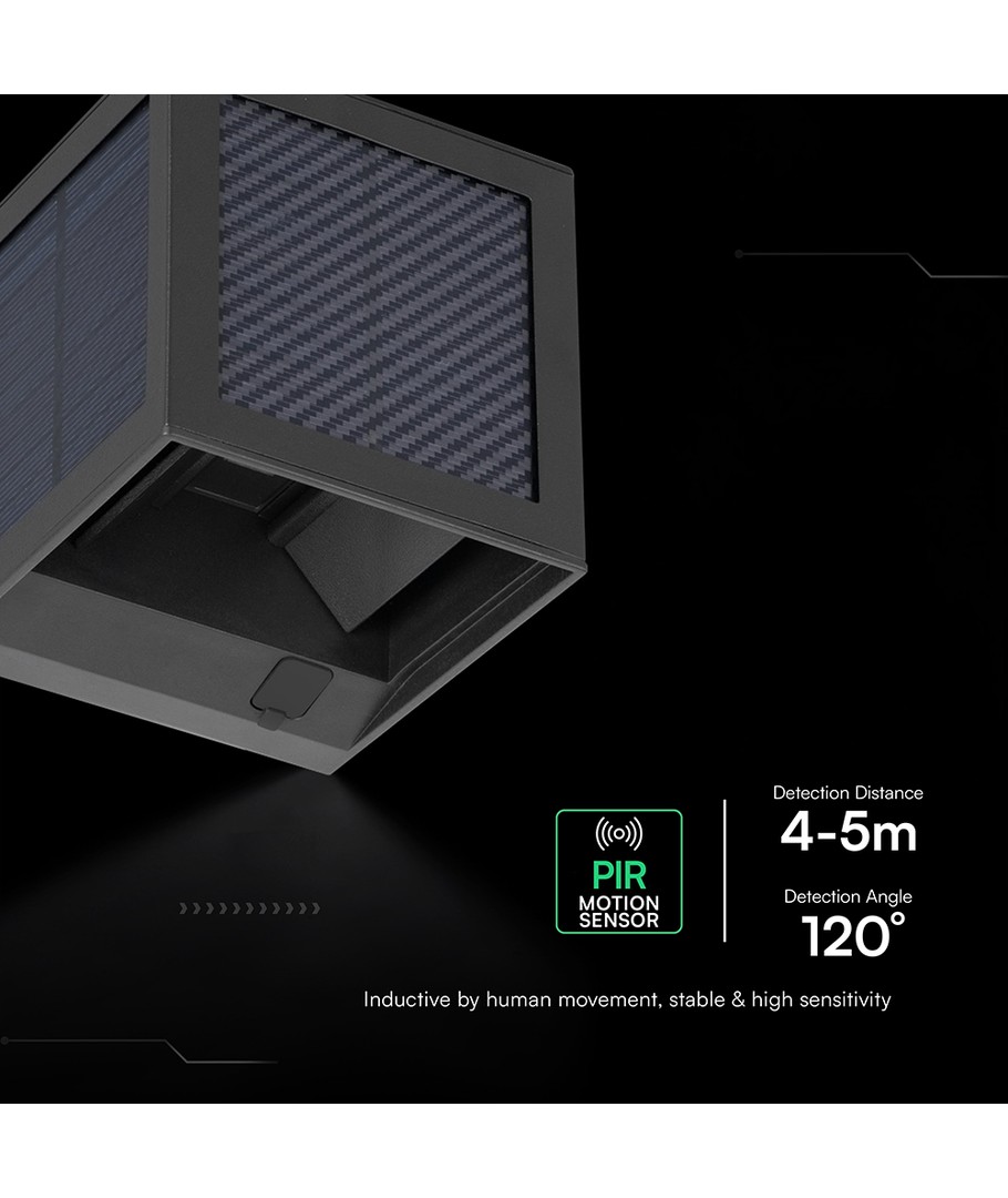 Nieuw V-Tac 9W Solara wandlamp met sensor - IP65, zwart, 3-in-1 CCT, zonne-energie, PIR sensor v-tac Uitklappen