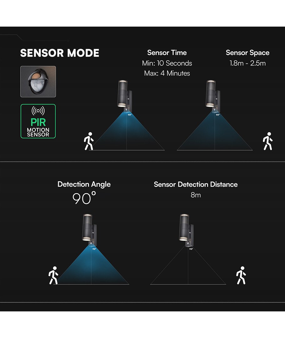 | Aanvullende opmerkingen | Sensor type: PIR. Sensor angle: 90°. Sensor distance: 8 Meters. |