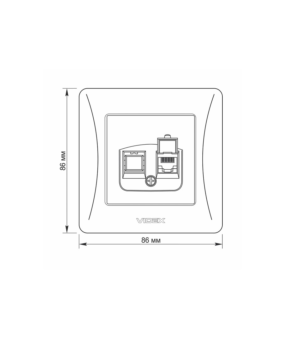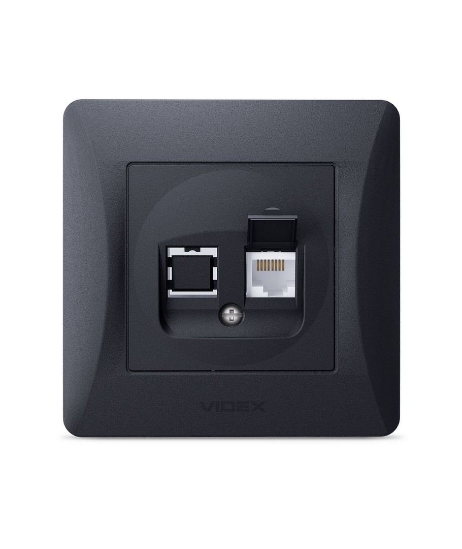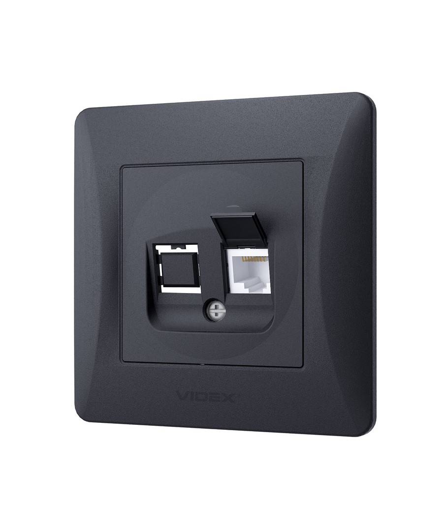 Binera CAT6 netwerkaansluiting - RJ45, IP20, grafiet zwart, 86x86 mm Videx Uitklappen
