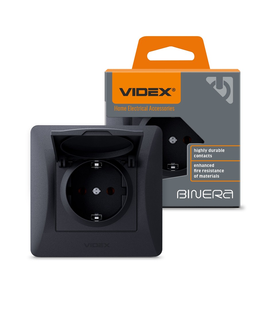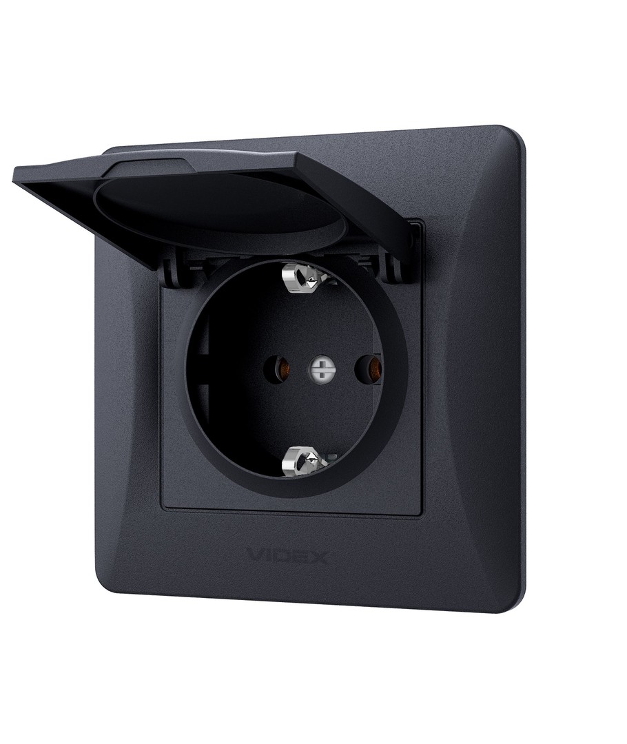 Schuko-stekker - enkel, met deksel, zwart is ontworpen om een combinatie van veiligheid en stijl te bieden.