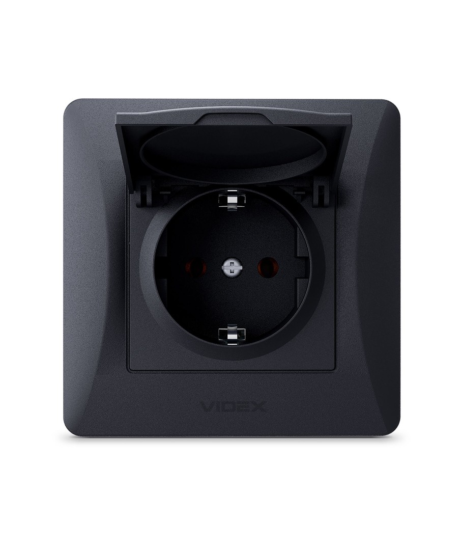 Schuko-stekker - enkel, met kap, zwart Videx Uitklappen