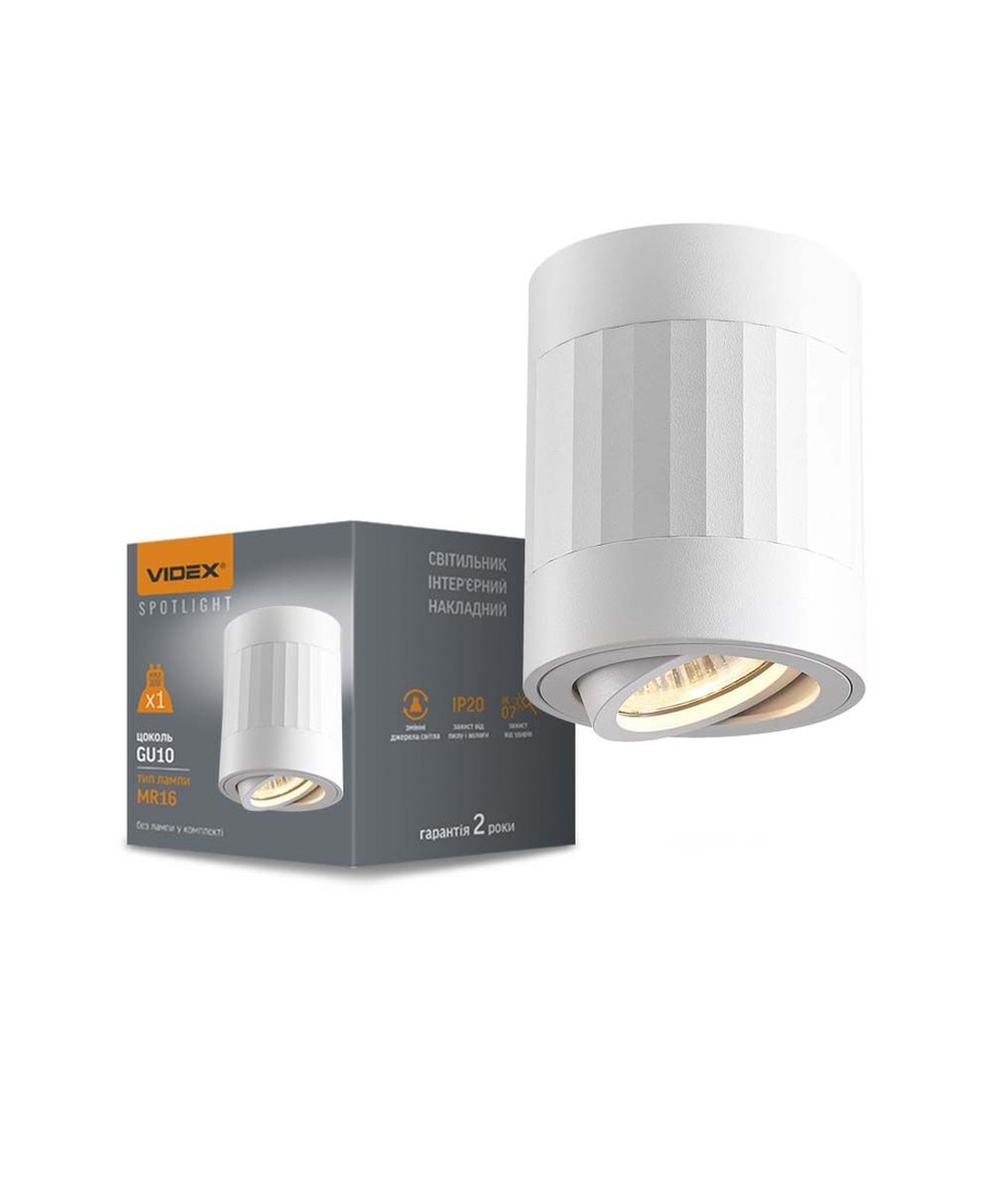 GU10 opbouwspot - Wit, Ø8x10cm, aluminium, IP20, zonder lichtbron Videx Uitklappen