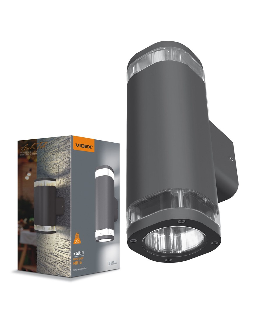 GU10 dubbele gevelarmatuur - IP54 buiten, grijs, up/down licht, zonder lichtbron Videx Uitklappen