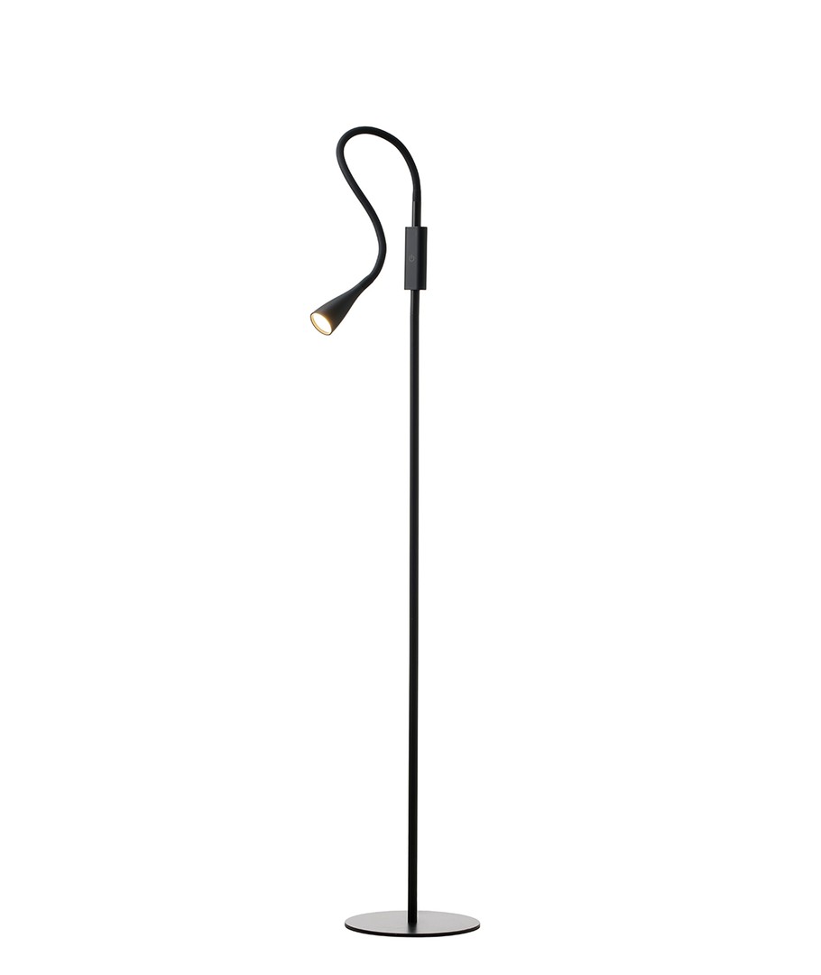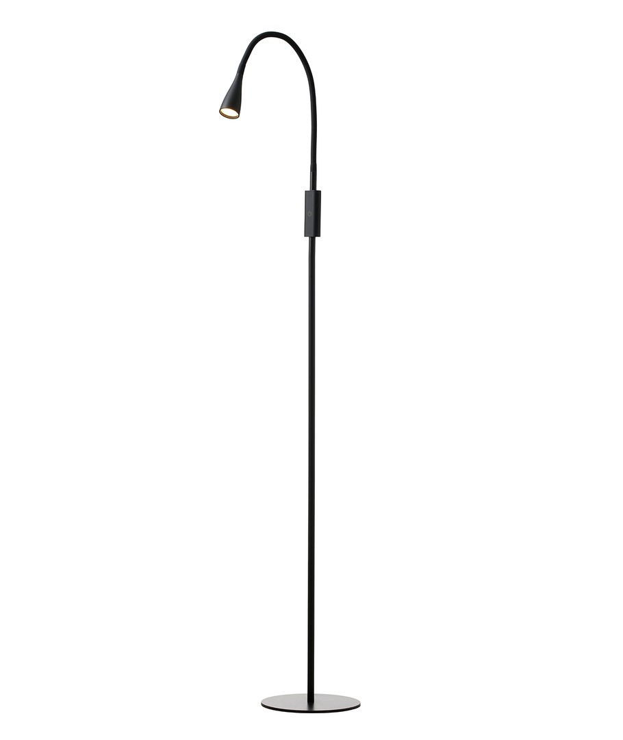 Mooie zwarte LED vloerlamp van Nielsen Light genaamd Twist in een mooi en eenvoudig design. De lamp heeft een ingebouwde Touch dimmer op de stang, waardoor deze eenvoudig te bedienen is. Aan/uit bevindt zich in dezelfde schakelaar als de dimmer.