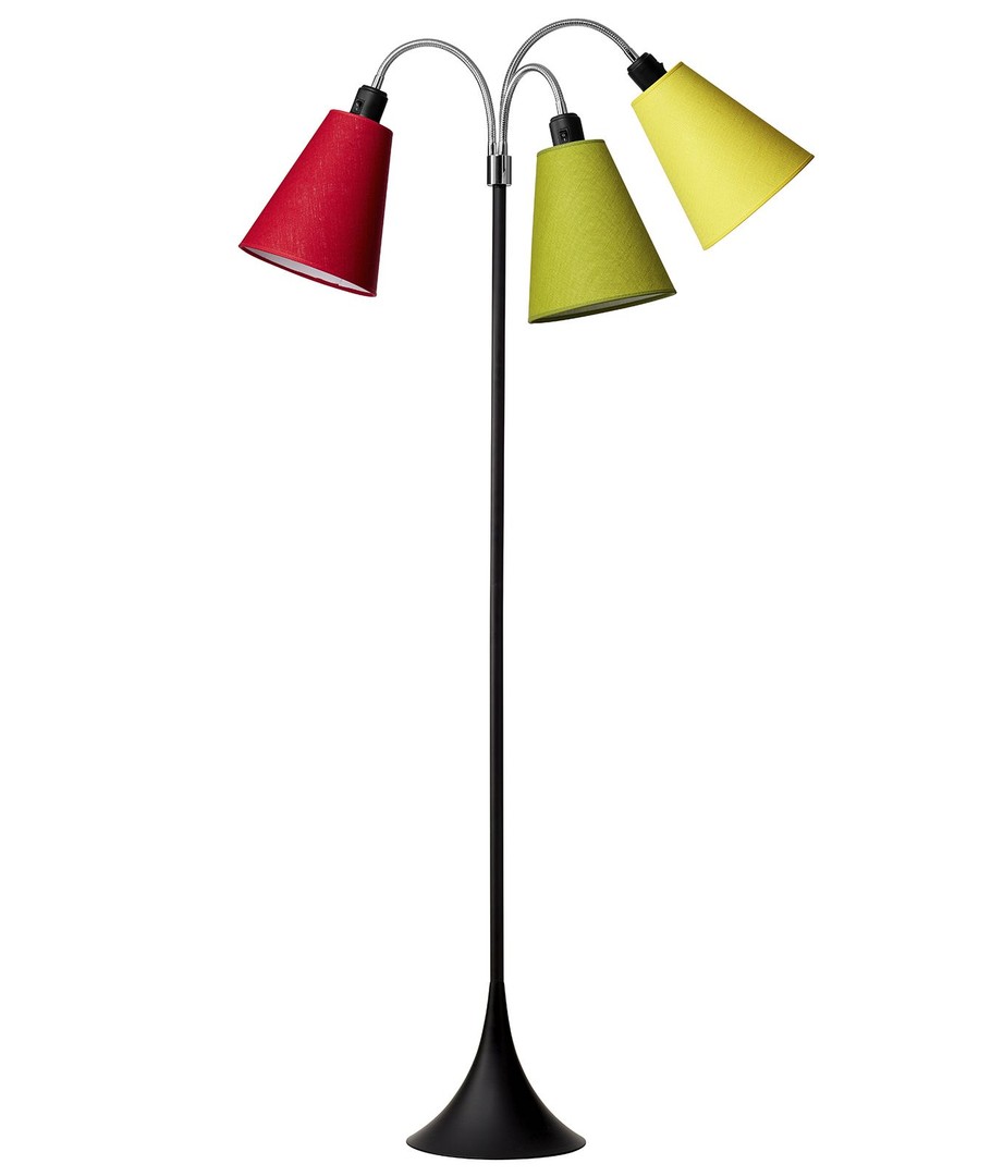 De klassieke, functionele vloerlamp in elegant design, met 3 kappen in verschillende kleuren.