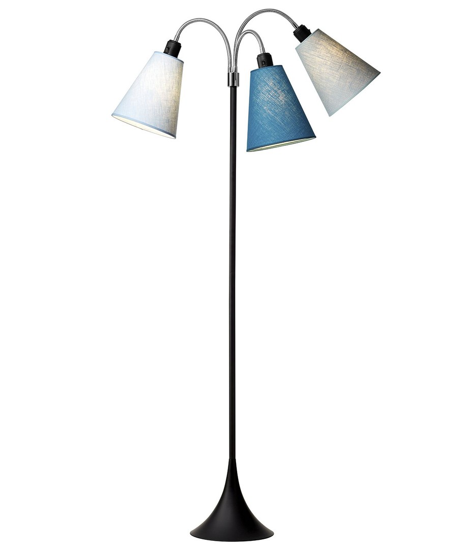 Deze uitvoering heeft een bijzonder koel kleurprofiel, met één kap in normaal lichtblauw, één in turquoise blauw en één in de donkerblauwe petroleumkleur.