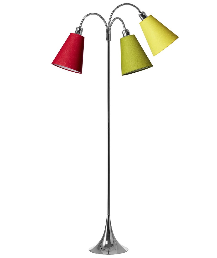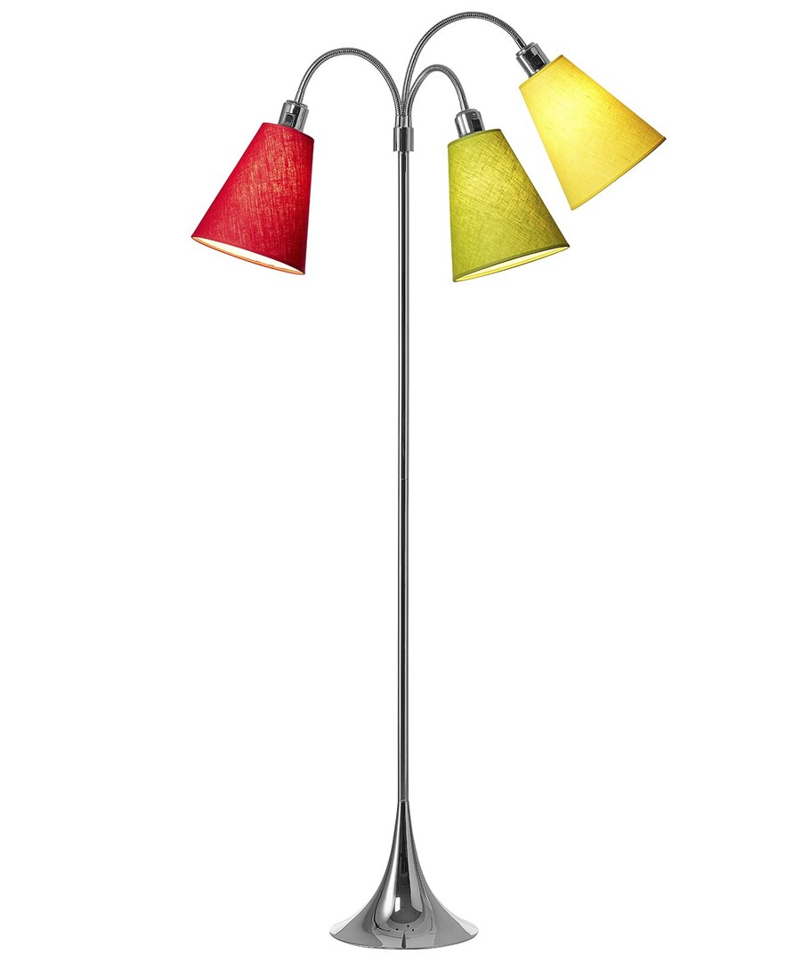Deze uitvoering is extra levendig, met één kap in limegroen, één in geel en één in rood.