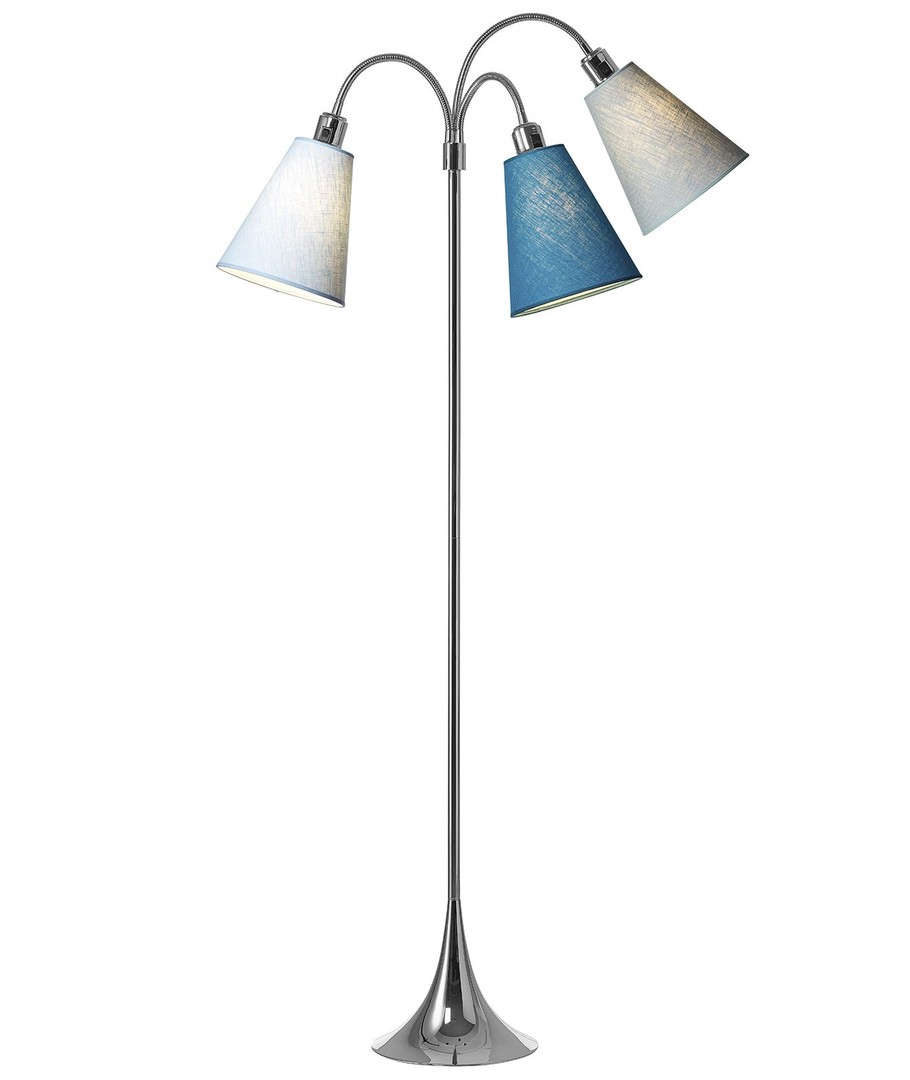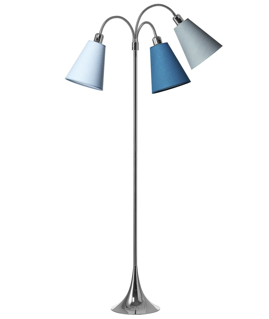 Deze uitvoering heeft een bijzonder koel kleurprofiel, met één kap in normaal lichtblauw, één in turquoise blauw en één in de donkerblauwe petroleumkleur.