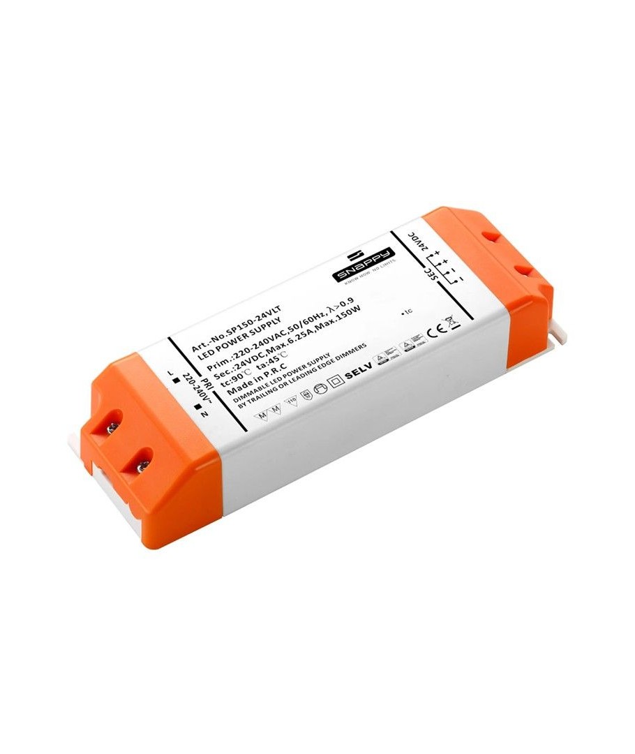 Dimbare kwaliteits LED driver van Snappy van 1-150W die een constante spanning van 24V DC levert - De driver is perfect voor het dimmen van 24V LED strips. Niet aanbevolen voor LED lampen.