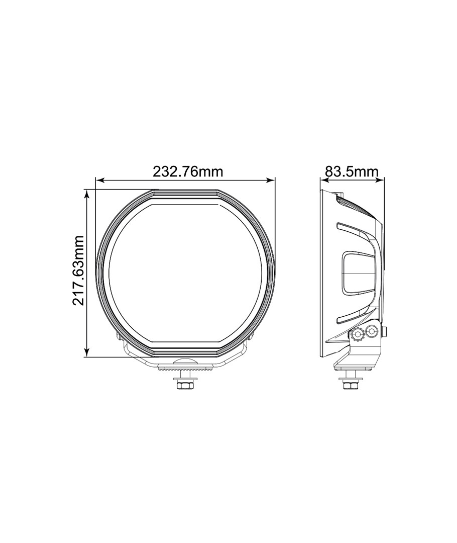 De afmetingen van het product van 233 x 218 mm maken het gemakkelijk te integreren en te installeren op verschillende soorten voertuigen. De IP67-classificatie bevestigt dat het apparaat robuust genoeg is om zware weersomstandigheden en stoffige terreinen te weerstaan, hoewel het niet langdurig onder water mag liggen.