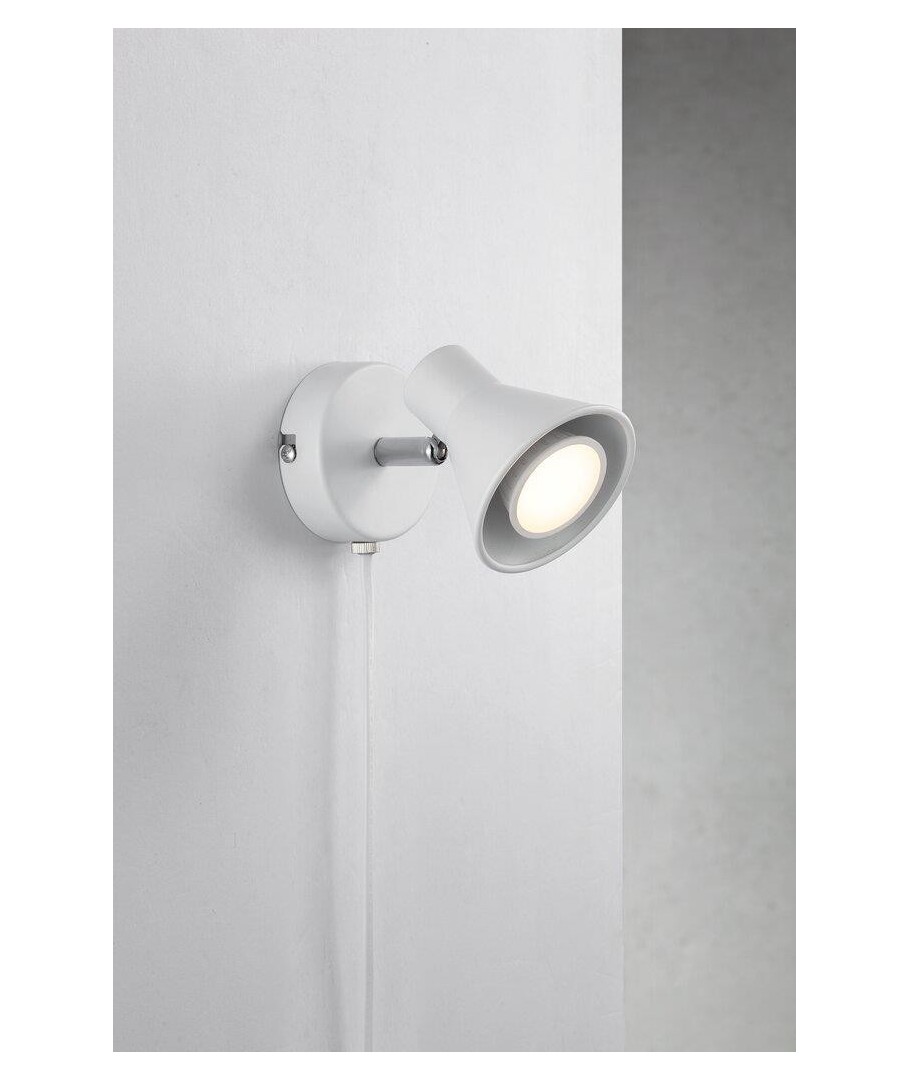 Discrete en praktische spotlamp met één spot in het wit. Deze spotlamp kan op verschillende plekken in de woning geplaatst worden om focus of sfeer te creëren.