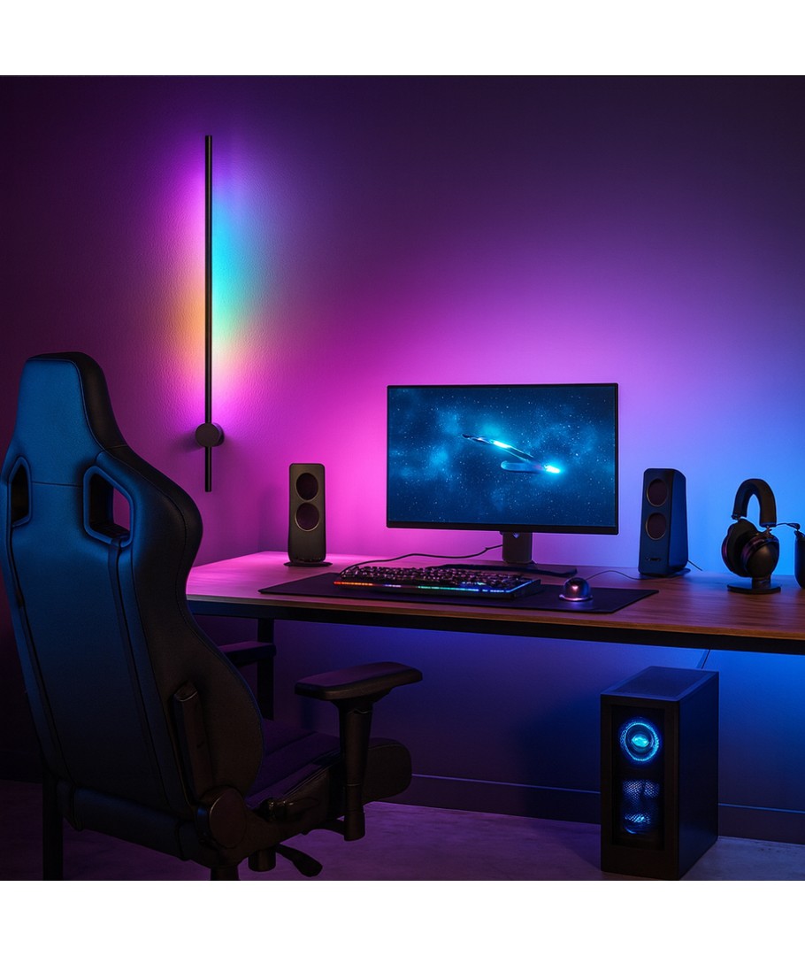 Deze 60 cm RGBIC wandlamp is ontworpen om je gaming- of streaming-setup naar een hoger niveau te tillen. Met dynamische kleuren, reactieve effecten en totale controle via app en afstandsbediening krijg je een lamp die bij je stijl past – of je nu gamet, films kijkt of je setup laat zien.