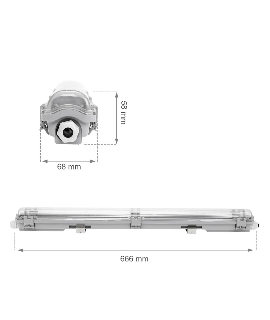 Waterdichte armatuur klaar voor 1 x 60 cm LED buis.