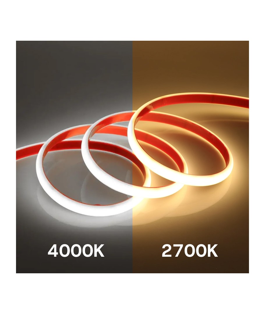 COB LED zonder zichtbare afstand tussen de LED-dioden. Dit zorgt ervoor dat het licht lijkt op een ononderbroken streng.