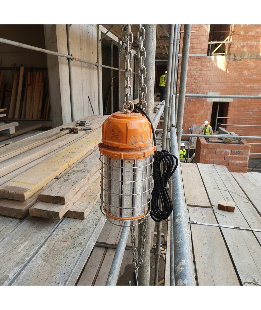 De robuuste constructie met beschermend metalen rooster maakt de lamp ideaal voor bouwplaatsen, werkplaatsen en andere veeleisende omgevingen.